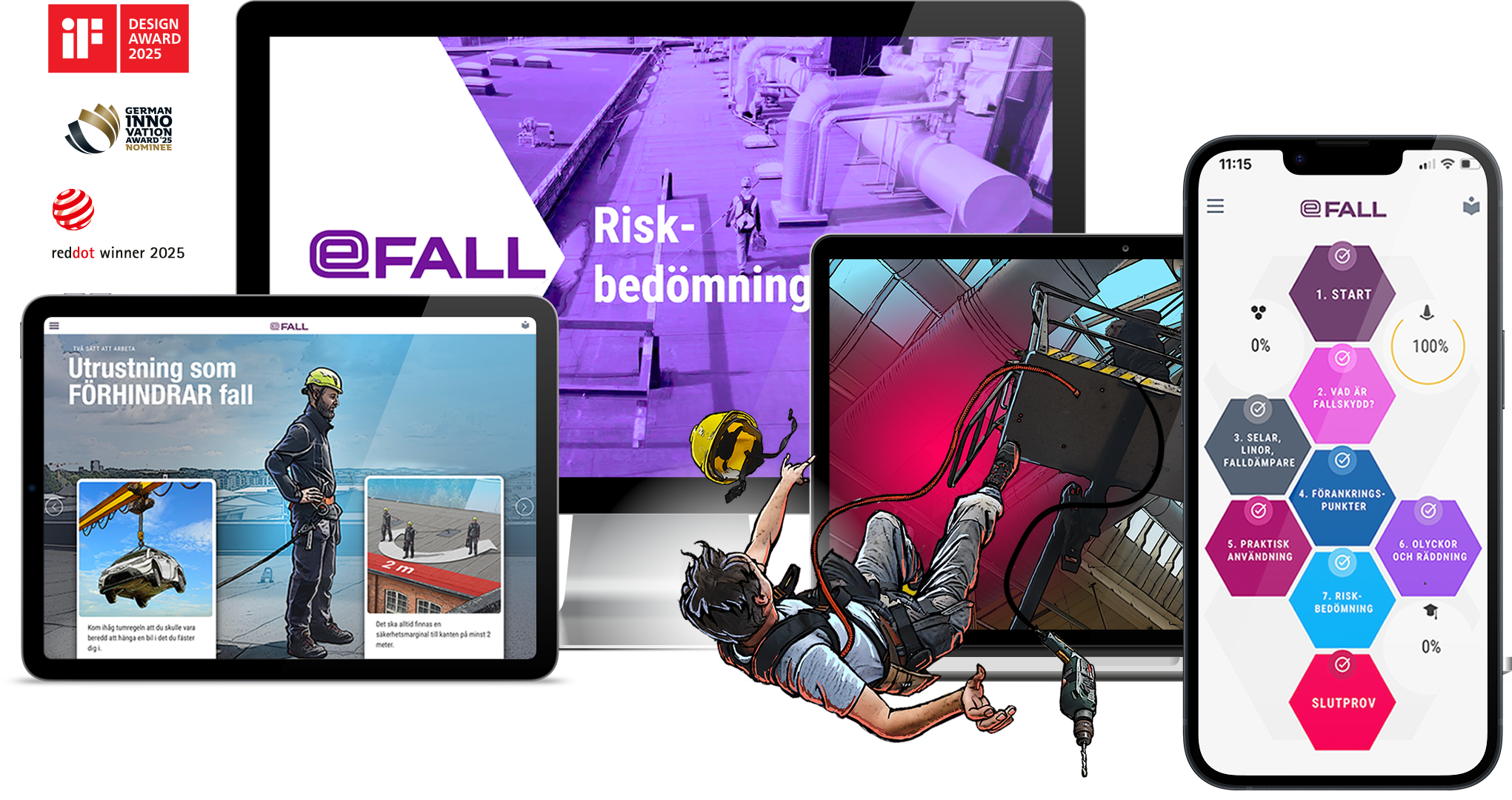 eFall is an online fall protection course that combines the efficiency of e-learning with real-life skills. eFall explains the challenges of working at height, what mistakes can lead to, and how accidents can be avoided.